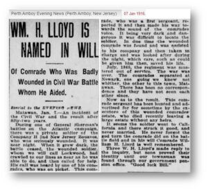 William married Mary Eliza Lane (1842-1916) in 1863. Her obituary indicated that she was born in Hoboken, NJ but grew up in Manhattan. Their marriage occurred shortly before William enlisted, and after the war the family located to the Freneau section of Matawan. The 1880 census lists William’s occupation as ‘painter’, although later advertisements in the Matawan Journal described him as a Justice of the Peace and notary, with “pension claims a specialty.” According to author John Zinn, William’s record had numerous documents wherein he challenged decisions regarding his pension.