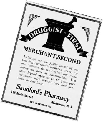 The very first movie theater in Matawan was at this location showing silent films movies such as “the Perils of Pauline.” Mrs. Leary masterfully played the piano to go with the mood of what was on the screen. In the summer there was no air conditioning and shows would move outside to the vacant lot in the rear of the building.