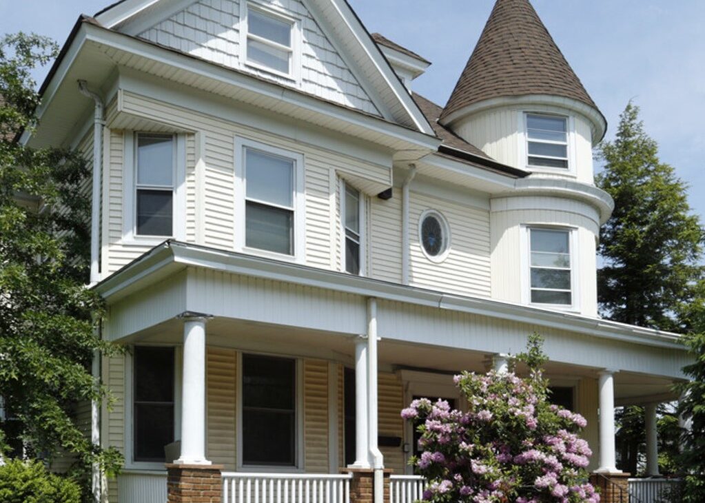 The current structure was built c. 1901. The style is Queen Anne Victorian. The house has a turret with porch the length of the front of home.